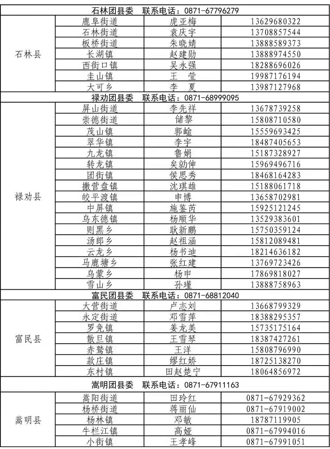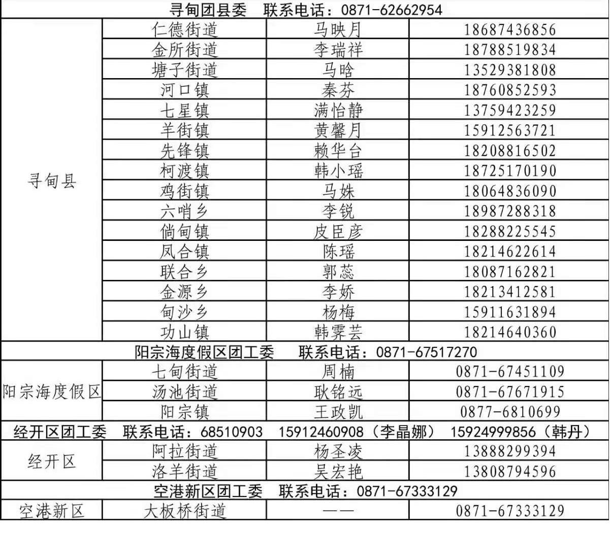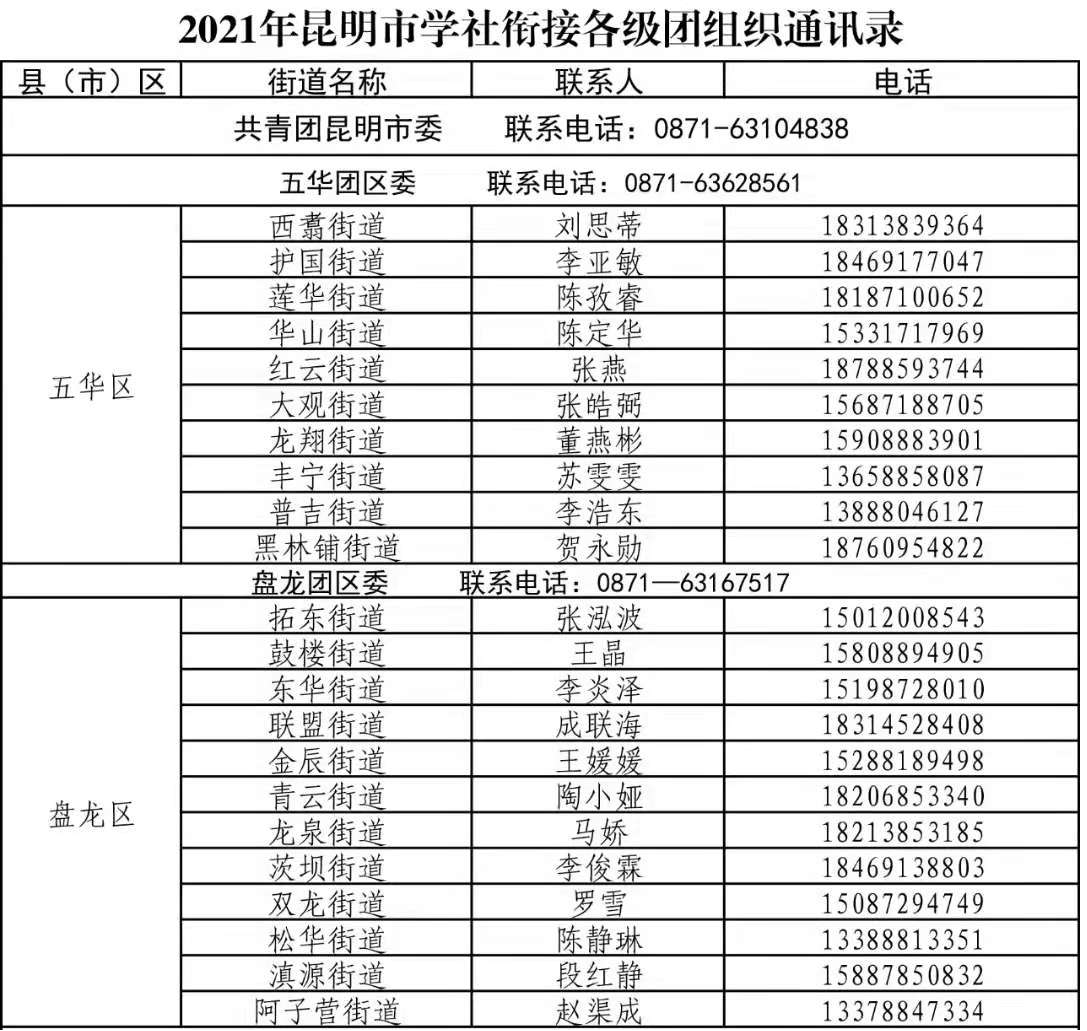 附:昆明各级团组织街道联系电话(可联系街道确定地址后再前往)。